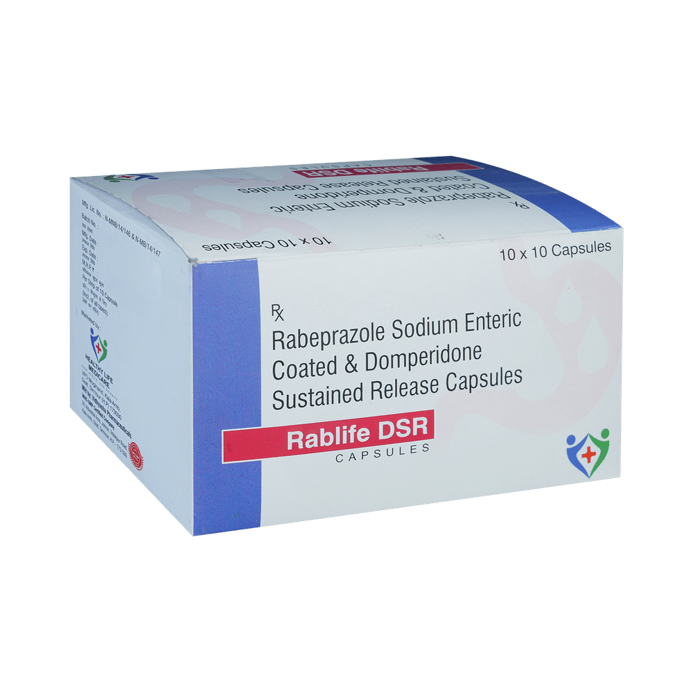 In Treatment of Gastroesophageal reflux disease (Acid reflux)Gastroesophageal reflux disease (GERD) is a chronic (long-term) condition in which there is an excess production of acid in the stomach. Rablife DSR Capsule reduces the amount of acid your stomach makes and relieves the pain associated with heartburn and acid reflux. You should take it exactly as it is prescribed for it to be effective. Some simple lifestyle changes can help reduce the symptoms of GERD. Think about what foods trigger heartburn and try to avoid them; eat smaller, more frequent meals; try to lose weight if you are overweight, and try to find ways to relax. Do not eat within 3-4 hours of going to bed.In Treatment of Peptic ulcer diseasePeptic ulcer disease is a condition in which painful sores or ulcers develop in the inner lining of the stomach or gut (intestine). Rablife DSR Capsule reduces the amount of acid your stomach makes which prevents further damage to the ulcer as it heals naturally. You may be given other medicines along with this medicine depending on what caused the ulcer. You need to keep taking the medicine as it is prescribed for it to be effective, even if the symptoms seem to disappear.show moreshow less