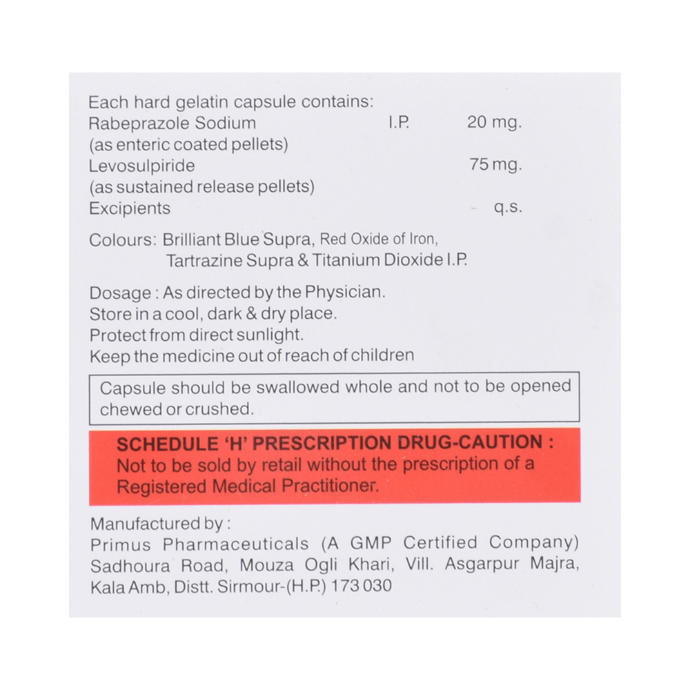 Salt Composition: Levosulpiride (75mg) + Rabeprazole (20mg)