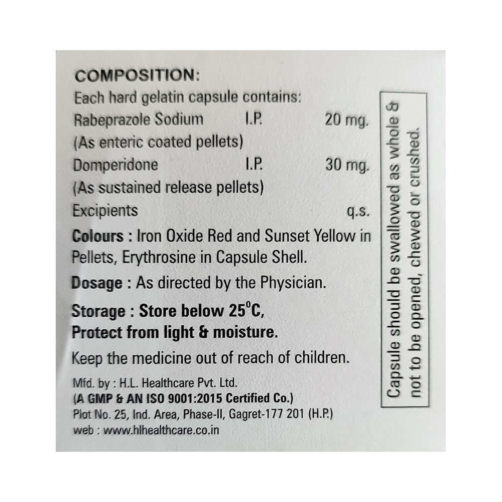 Salt Composition: Domperidone (30mg) + Rabeprazole (20mg)