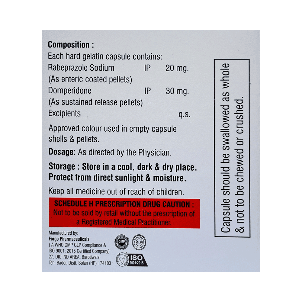 Salt Composition: Domperidone (30mg) + Rabeprazole (20mg)