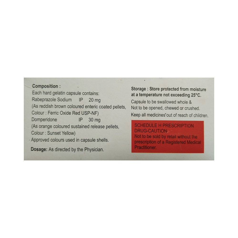 Salt Composition: Domperidone (30mg) + Rabeprazole (20mg)
