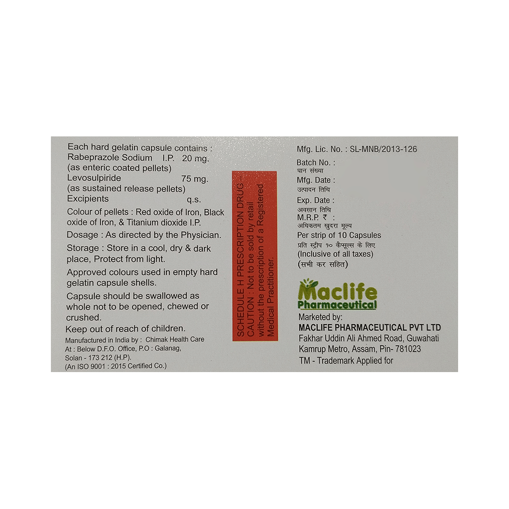 Salt Composition: Levosulpiride (75mg) + Rabeprazole (20mg)