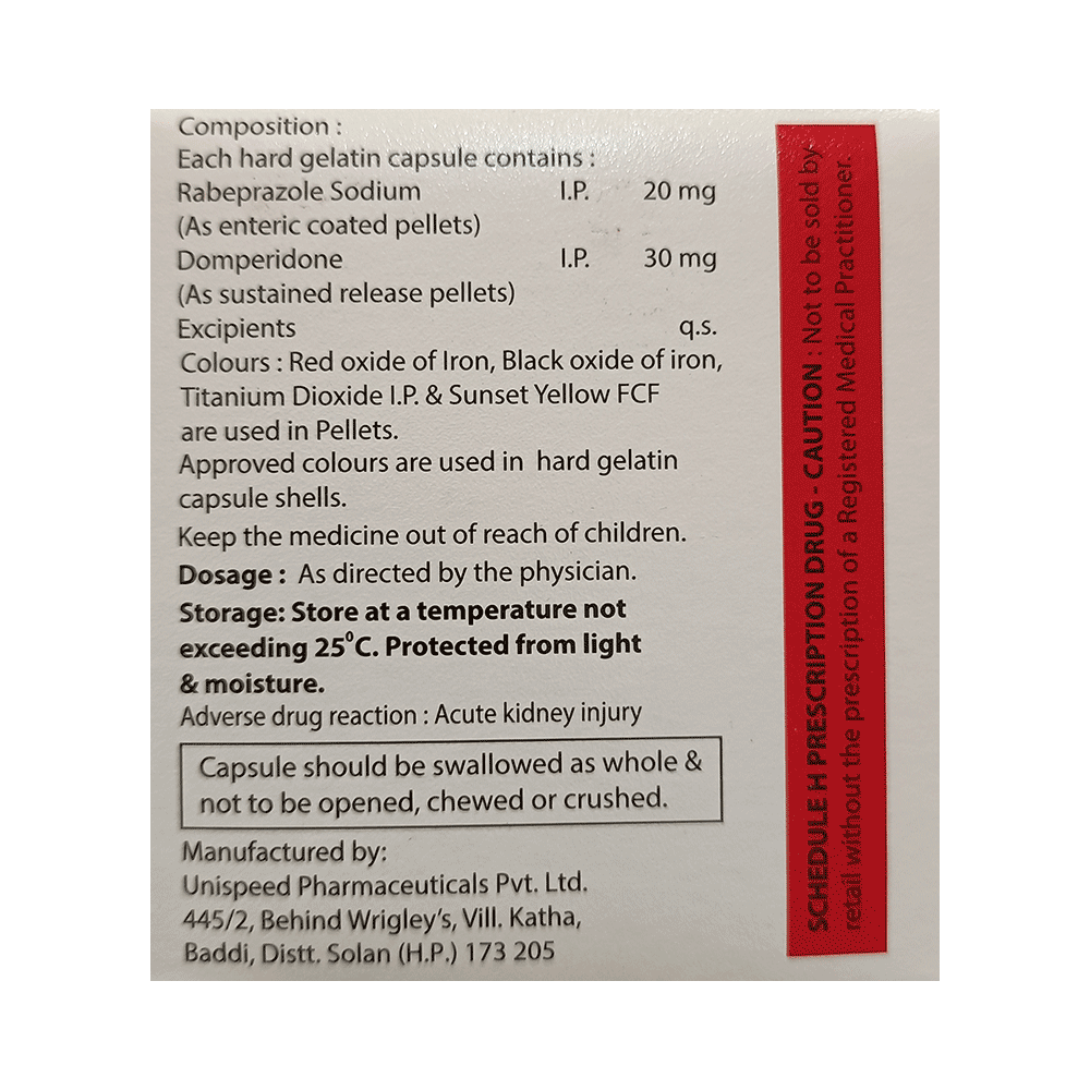 Salt Composition: Domperidone (30mg) + Rabeprazole (20mg)