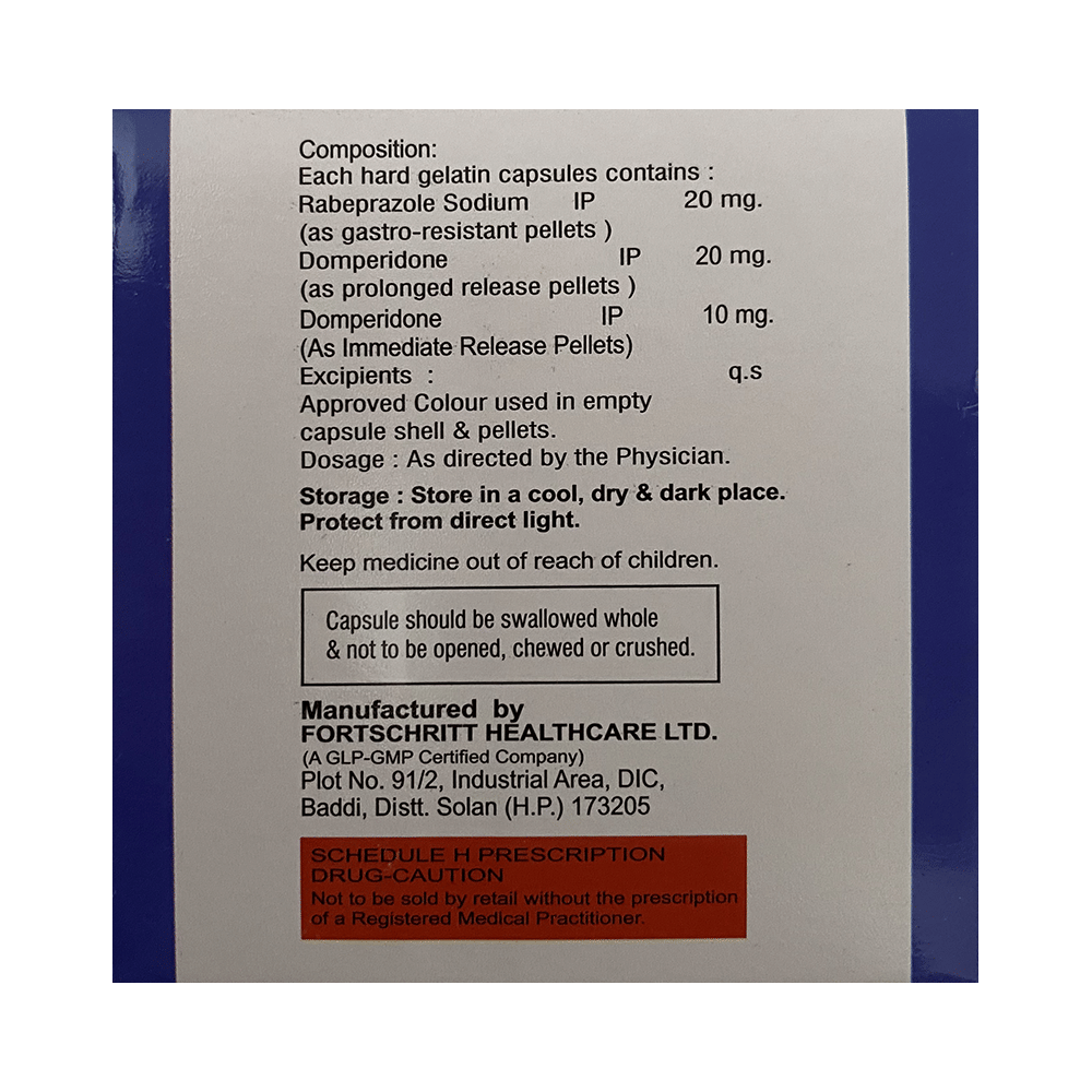 Salt Composition: Domperidone (30mg) + Rabeprazole (20mg)