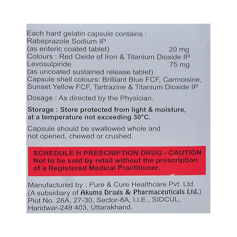 Salt Composition: Levosulpiride (75mg) + Rabeprazole (20mg)