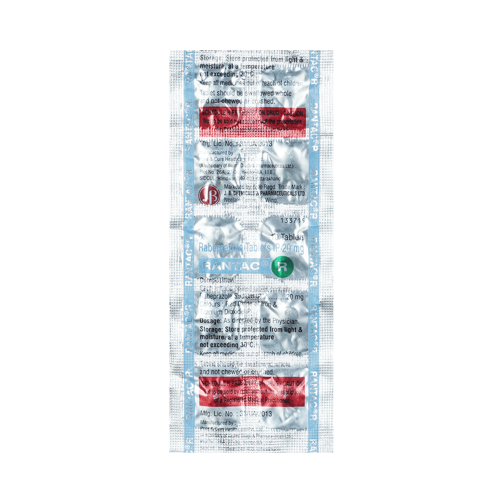 Rantac R Tablet is a medicine that reduces the amount of acid produced in your stomach. It is used in the treatment of acid-related diseases of the stomach and intestine such as acid reflux, peptic ulcer disease, and Zollinger-Ellison syndrome. It provides relief from symptoms and promotes healing. Rantac R Tablet medicine should be taken one hour before a meal, preferably in the morning. The dose will depend on your underlying condition and how you respond to the medicine. Try to take it regularly at the same time each day as advised by your doctor. You should keep on taking it as prescribed even if your symptoms disappear quickly. You may be able to help improve your symptoms by eating smaller meals more often and avoiding caffeinated drinks like tea and coffee, and spicy or fatty foods.This medicine's most common side effects include nausea, vomiting, headache, dizziness, flatulence, diarrhea, and stomach pain. These tend to be mild but talk to your doctor if they bother you or do not go away. The risk of side effects may increase the longer you take this medicine. Long-term use (more than 1 year) may increase your risk for bone fractures, especially with higher doses. Talk to your doctor about ways to prevent bone loss (osteoporosis), like taking calcium and vitamin D supplements.Low blood magnesium levels (hypomagnesemia) have been seen in some people taking this medicine for 3 months or more. This may lead to tiredness, confusion, dizziness, muscle twitches, and an irregular heartbeat. Your doctor may monitor your magnesium levels to prevent this.Rantac R Tablet is not suitable for some people. Before taking this medicine, you need to tell your doctor if you have severe liver problems, are taking medicines for HIV, have ever had an allergic reaction to similar medicines in the past, or suffer from bone loss (osteoporosis). Pregnant or breastfeeding women should also consult their doctor before taking it. Avoid drinking alcohol as it makes your stomach produce excessive acid and can worsen your symptoms. Do not drive or use machinery or tools, if this medicine makes you feel dizzy or sleepy.