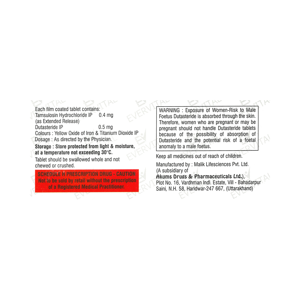 Salt Composition: Tamsulosin (0.4mg) + Dutasteride (0.5mg)