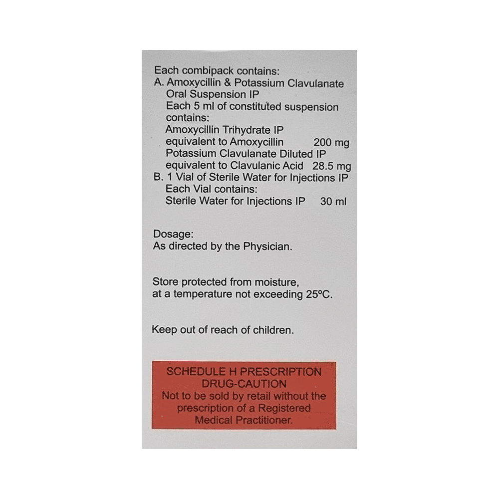 Salt Composition: Amoxycillin (200mg) + Clavulanic Acid (28.5mg)