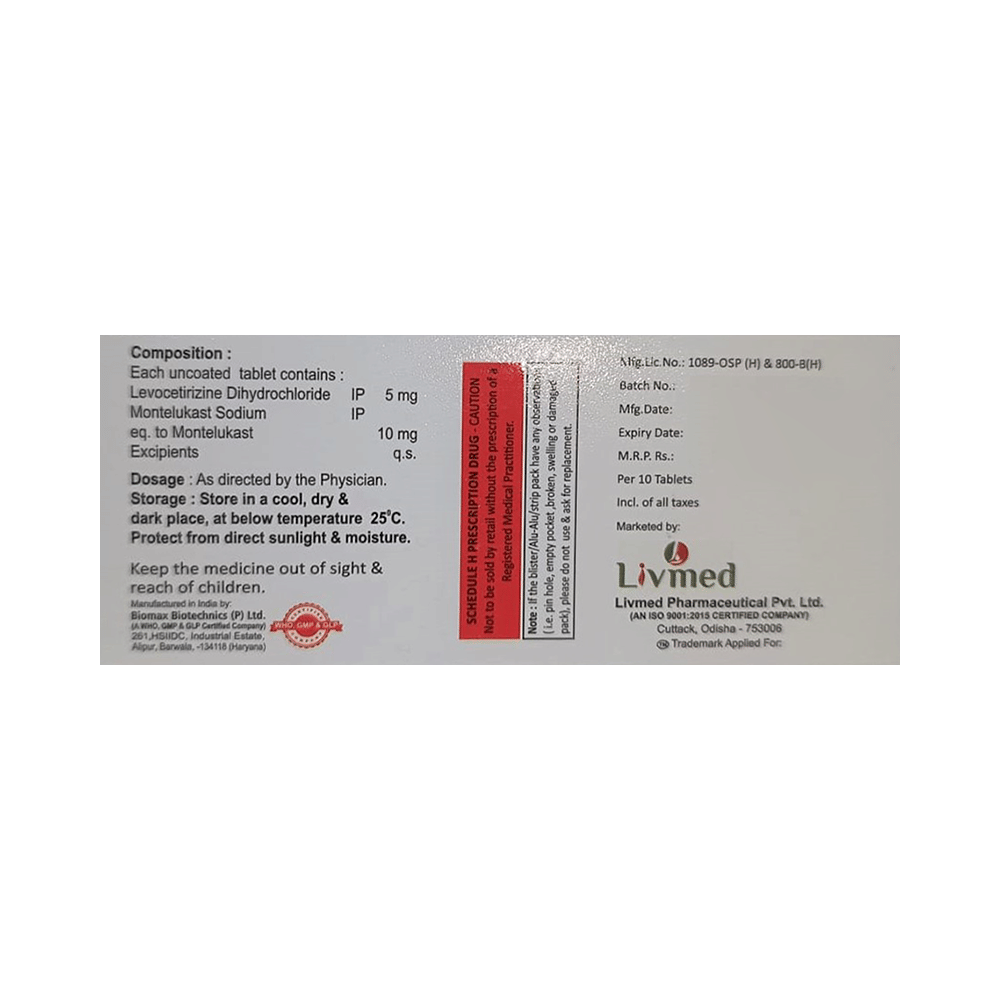 Salt Composition: Levocetirizine (5mg) + Montelukast (10mg)