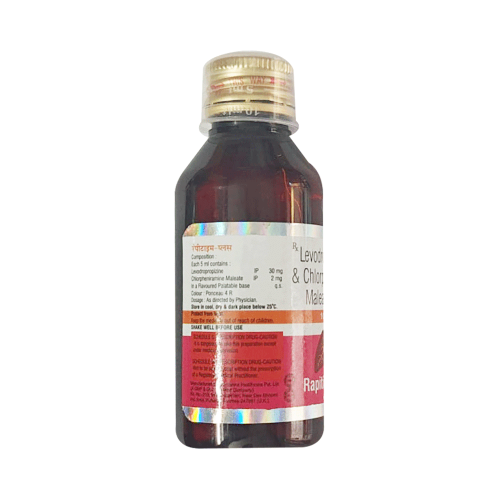 Rapitime-Plus Syrup Sugar Free is a combination of two medicines: Chlorpheniramine Maleate and Levodropropizine, which relieves dry cough. Chlorpheniramine Maleate is an antiallergic which helps reduce cough associated with allergies by blocking the effects of a chemical messenger, histamine. Levodropropizine is a cough suppressant which relieves cough by reducing the activity of cough center in the brain.
