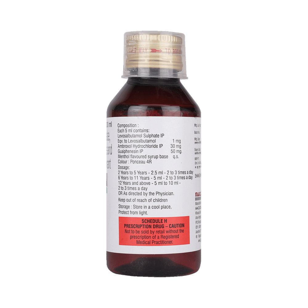 Salt Composition: Ambroxol (30ml/5ml) + Levosalbutamol (1mg/5ml) + Guaifenesin (50mg/5ml)