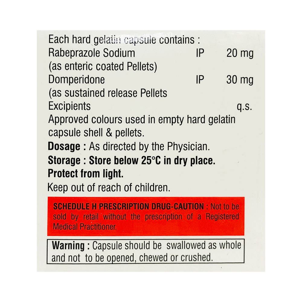 Salt Composition: Domperidone (30mg) + Rabeprazole (20mg)