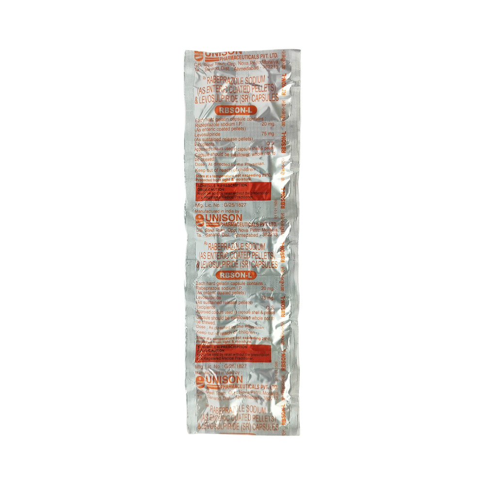 In Treatment of Intestinal ulcersIntestinal ulcers are painful sores that develop in the inner lining of the stomach or gut (intestine). Rbson-L Capsule reduces the amount of acid your stomach makes which prevents further damage to the ulcer as it heals naturally. You may be given other medicines along with this medicine depending on what caused the ulcer. You need to keep taking Rbson-L Capsule as prescribed by the doctor for it to be effective, even if the symptoms seem to disappear.In Treatment of Irritable bowel syndromeIrritable bowel syndrome is a chronic (long-term) inflammatory disease of the large intestine (colon) that usually needs long term management. This can lead to bleeding, frequent diarrhea, bloating, flatulence, cramps and stomach pain. Rbson-L Capsule relaxes the muscles in your stomach and gut (intestine) and relieves these symptoms effectively. Usually, it is used along with other medicines for management of your condition. Continue taking it for as long as the doctor may advise you to. You need to take this medicine regularly to get the most out of it. Take a fiber-rich diet, avoid oily or spicy food and drink plenty of fluids while taking it to make sure you stay hydrated.In Treatment of Gastroesophageal reflux disease (Acid reflux)Gastroesophageal reflux disease (GERD) is a chronic (long-term) condition in which there is an excess production of acid in the stomach. Rbson-L Capsule reduces the amount of acid your stomach makes and relieves the pain associated with heartburn and acid reflux. You should take it exactly as it is prescribed for it to be effective.Some simple lifestyle changes can help reduce the symptoms of GERD. Think about what foods trigger heartburn and try to avoid them; eat smaller, more frequent meals; try to lose weight if you are overweight and try to find ways to relax. Do not eat within 3-4 hours of going to bed.show moreshow less