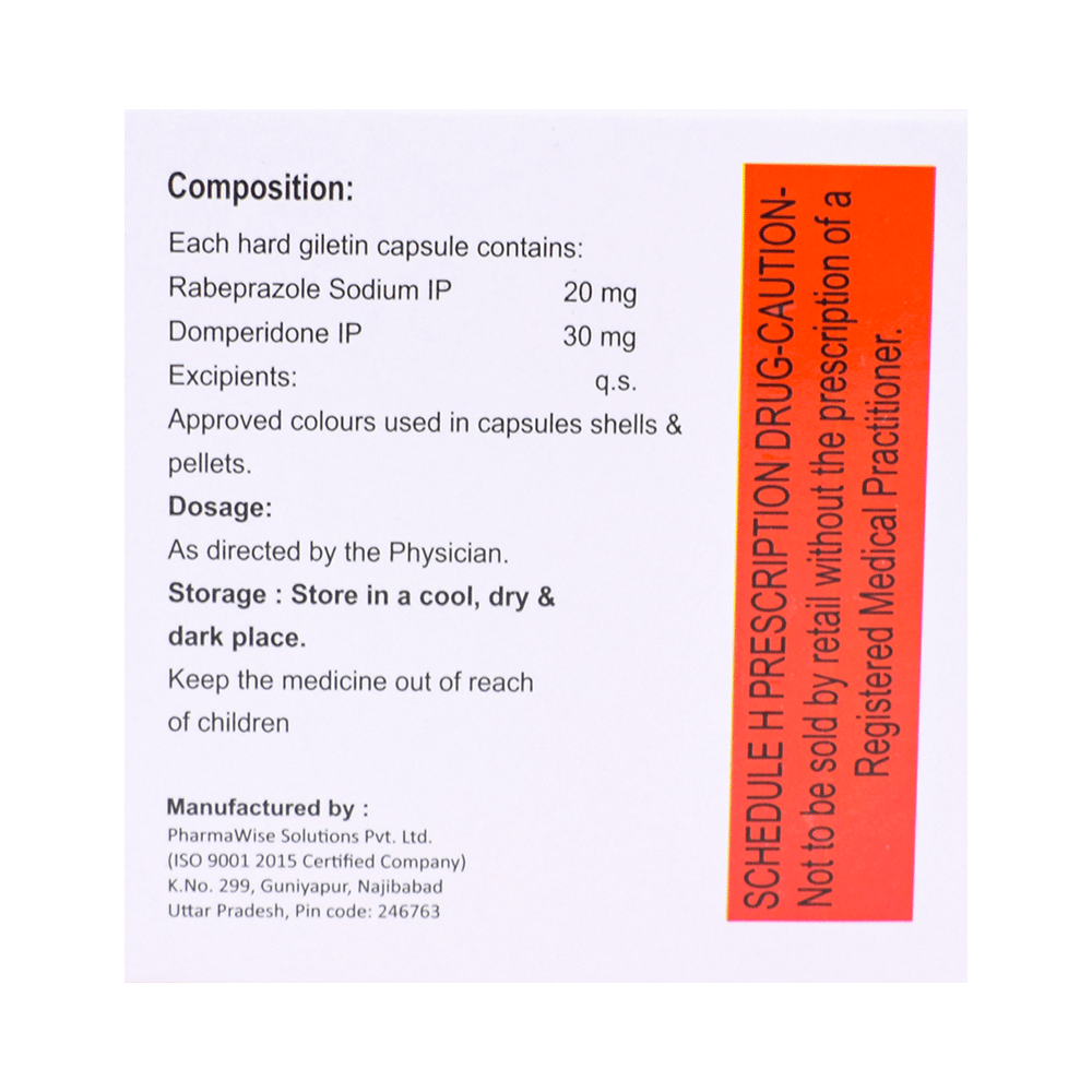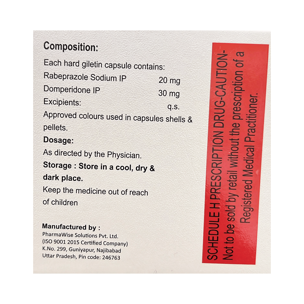 Salt Composition: Domperidone (30mg) + Rabeprazole (20mg)