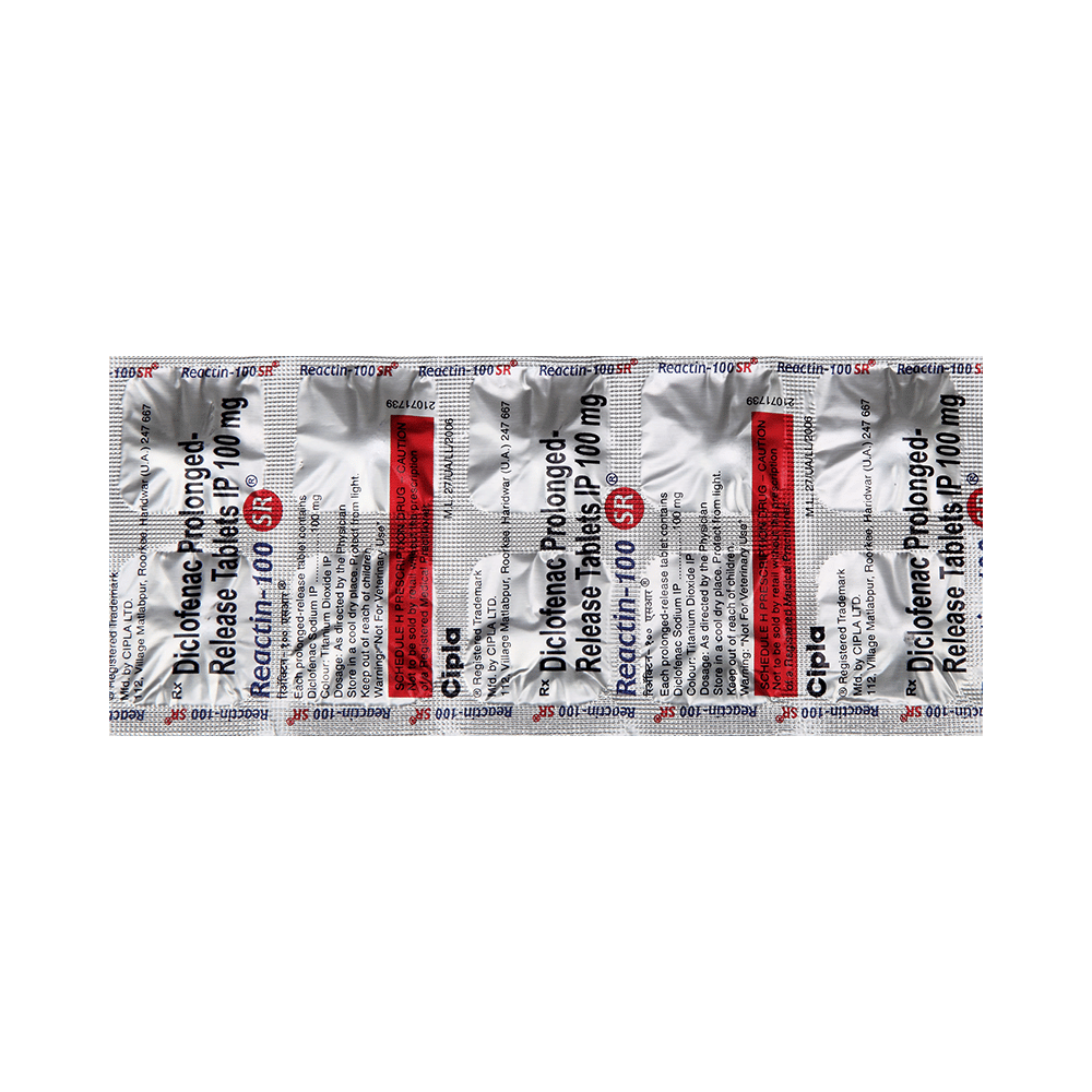 Reactin 100 SR Tablet is a non-steroidal anti-inflammatory drug (NSAID). It works by blocking the release of certain chemical messengers that cause pain and inflammation (redness and swelling).