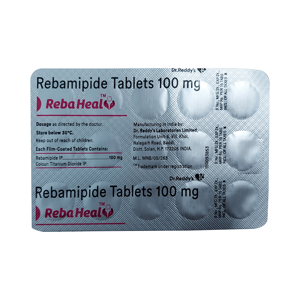 Rebaheal 100mg Tablet is a medicine used to treat stomach ulcers and gastritis. It increases protective mucus in the stomach, improves blood flow, and reduces inflammation. This helps heal damage caused by acid, irritation, or infection and relieves symptoms like pain, burning, and discomfort. Take Rebaheal 100mg Tablet exactly as prescribed by your doctor, usually once or twice daily. It can be taken with or without food. To get the most benefit, follow your doctor’s instructions carefully and take the medicine regularly without missing doses. In addition to taking Rebaheal 100mg Tablet, try to avoid spicy, oily, or acidic foods, limit alcohol intake, and manage stress, as these can irritate the stomach further. Quitting smoking, if you smoke, can also help improve your stomach health.Some people may experience mild side effects like nausea, constipation, diarrhea, or abdominal discomfort. These usually go away on their own as your body adjusts to the medicine. If the symptoms bother you or persist, talk to your doctor. Serious side effects are rare, but if you experience any unusual symptoms such as severe abdominal pain, allergic reactions, or rash, seek medical help immediately.Before starting Rebaheal 100mg Tablet, tell your doctor if you are pregnant, breastfeeding, or have any liver or kidney problems. Do not take this medicine if you are allergic to rebamipide or any of its ingredients. While on treatment, avoid overuse of painkillers like ibuprofen or aspirin, as they can irritate the stomach lining and slow down healing. Always inform your doctor about any other medications or supplements you are taking to avoid possible interactions.