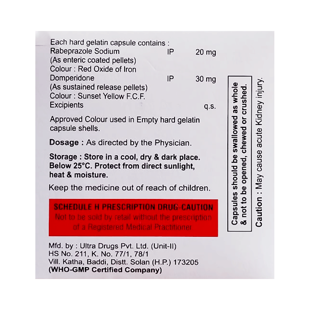 Salt Composition: Domperidone (30mg) + Rabeprazole (20mg)
