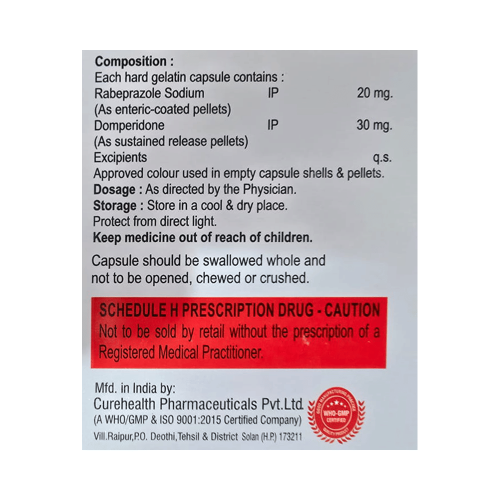 Salt Composition: Domperidone (30mg) + Rabeprazole (20mg)