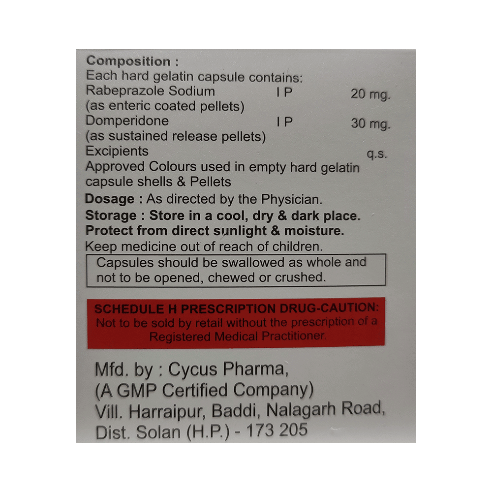 Salt Composition: Domperidone (30mg) + Rabeprazole (20mg)