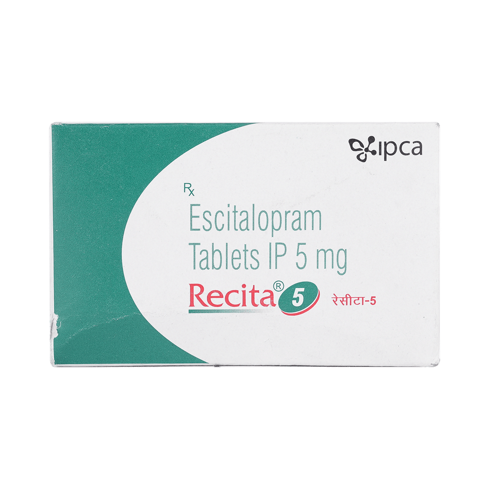 Recita 5 Tablet is widely prescribed to treat depression and other mental health conditions like anxiety, panic disorder, and obsessive-compulsive disorder. It is a type of antidepressant known as a selective serotonin reuptake inhibitor (SSRI). Recita 5 Tablet helps recover from depression by improving mood and relieving anxiety and tension. It can be taken with or without food. The dose and how often you need it will be decided by your doctor based on the amount needed to control your symptoms. Your doctor may start you on a lower dose and increase it gradually. Do not change the dose or stop taking it without talking to your doctor, even if you feel well. Doing so may make your condition worse or you may suffer from unpleasant withdrawal symptoms such as anxiety, restlessness, palpitations, dizziness, sleep disturbances.To get the most benefit, take this medicine regularly at the same time each day. Your doctor may advise you to take it in the morning if you have trouble sleeping. It may take a few weeks before you start feeling better. Let your doctor know if you do not see any improvement even after 4 weeks.Some common side effects of this medicine include nausea, fatigue, increased sweating, insomnia (difficulty in sleeping), decreased sexual drive, delayed ejaculation, and women may experience difficulties achieving orgasm. Some people may experience sleepiness after taking this medicine. Let your doctor know straight away if you develop any sudden worsening of mood or any thoughts about harming yourself.Before taking Recita 5 Tablet, you should tell your doctor if you have epilepsy (seizure disorder or fits), diabetes, liver or kidney disease, any heart problems, or are currently taking medicines for depression known as MAO inhibitors. These may affect your treatment. Please tell your doctor about all the medicines you are taking to make sure you are safe.