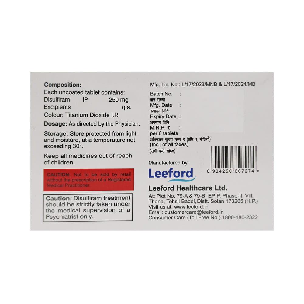 Salt Composition: Disulfiram (250mg)
