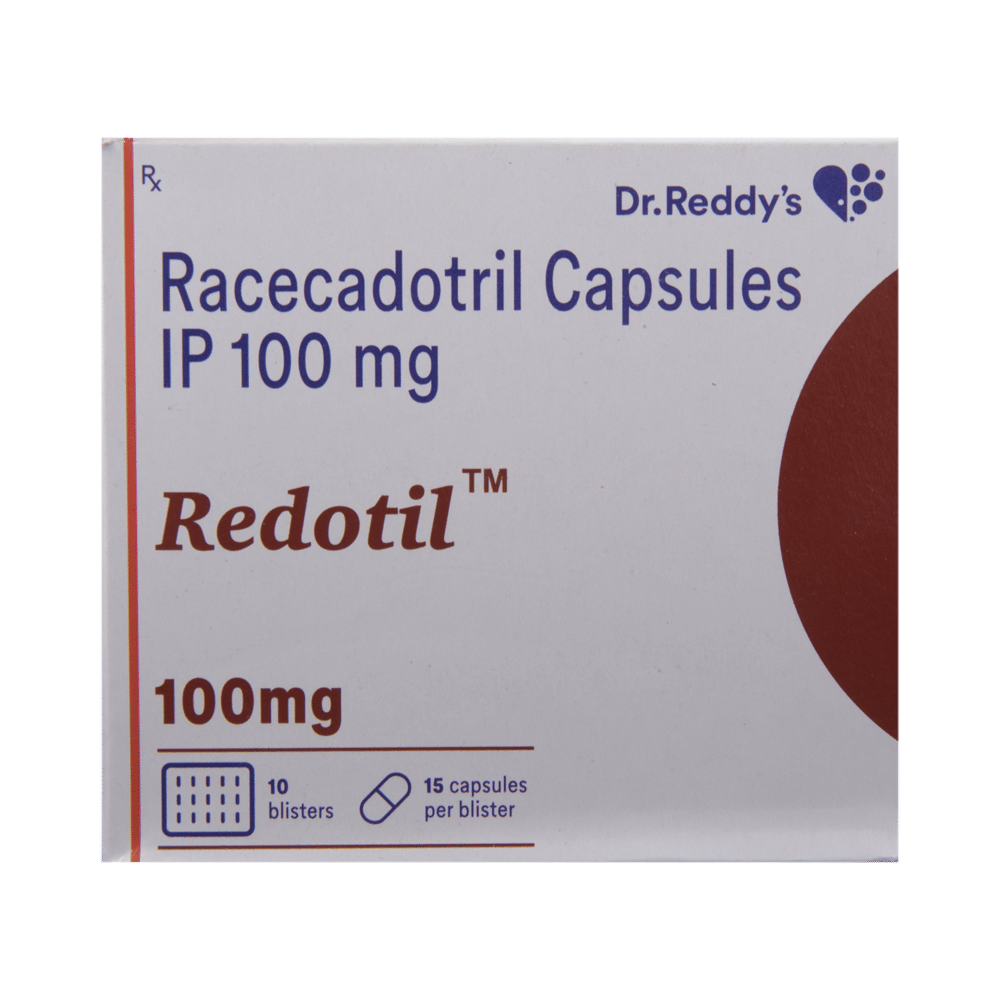 Redotil 100mg Capsule is used in the treatment of symptoms of acute diarrhea. It should be used along with abundant liquid intake and dietary measures. This medicine is used when fluid and dietary measures are not sufficiently effective to control diarrhea. Redotil 100mg Capsule is taken with food in a dose and duration as advised by the doctor. It is important to take this medicine along with an oral rehydration solution (ORS) to provide adequate fluid and electrolyte replacement. The dose you are given will depend on your condition and how you respond to the medicine. You should take this medicine until your doctor tells you to stop. Let your doctor know about all other medications you are taking as some may affect, or be affected by this medicine.The most common side effects are vomiting and fever. Most of these are temporary and usually resolve with time. Contact your doctor straight away if you are at all concerned about any of these side effects.This medicine should not be used in children if they have blood or pus in stools, chronic diarrhea, diarrhea caused by antibiotics, and suffering from kidney or liver disease. It is also not used in children under three months of age. Pregnant or breastfeeding women should also consult their doctor.