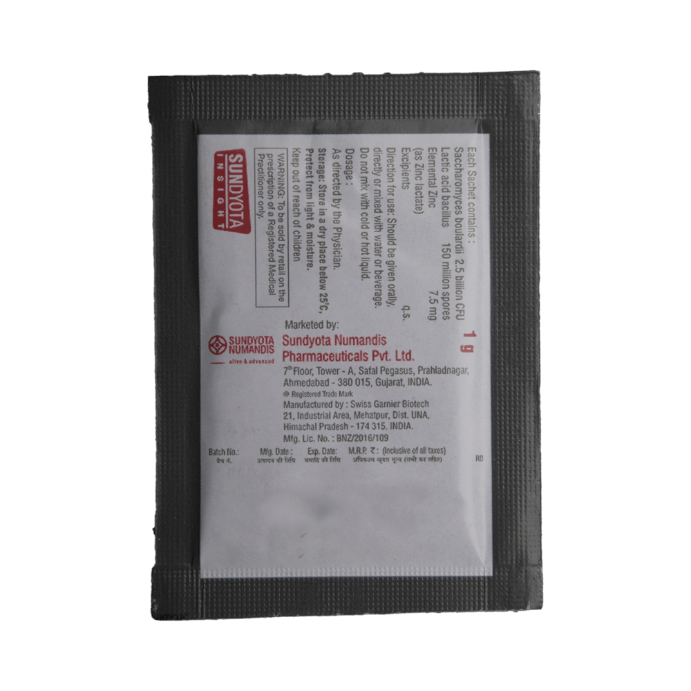Salt Composition: Lactic acid bacillus (150Million spores) + Saccharomyces boulardii (2.5Billion CFU) + Zinc (7.5mg)