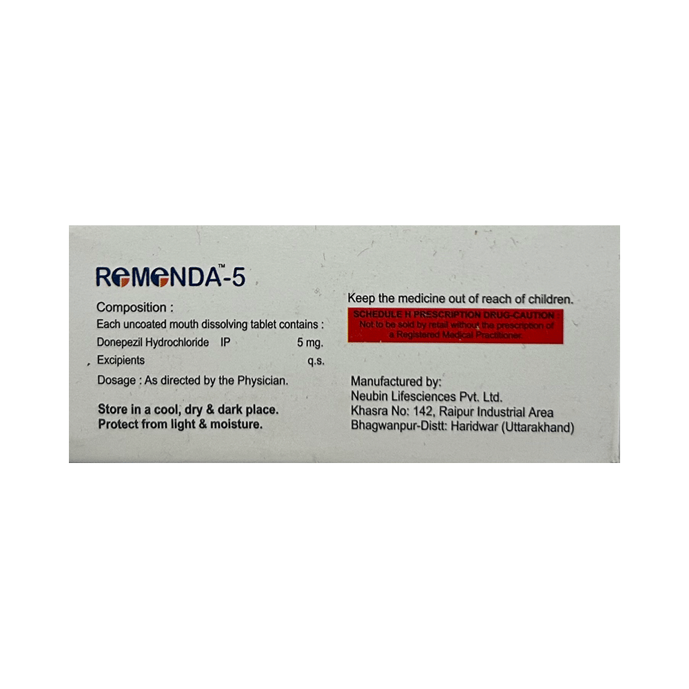 Memory loss in Alzheimer’s disease occurs due to disturbances of signal transmission in the brain. Remenda 5mg Tablet is a cholinesterase inhibitor. It works by increasing the levels of a chemical messenger (acetylcholine) involved in transmmission of nerve signals. This improves memory and thinking.