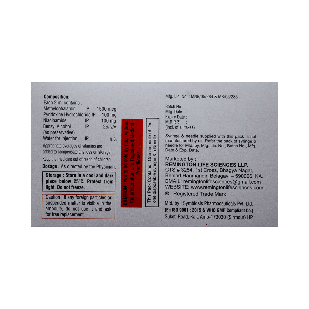 Salt Composition: Methylcobalamin (1500mcg) + Vitamin B6 (Pyridoxine) (100mg) + Niacinamide (100mg)