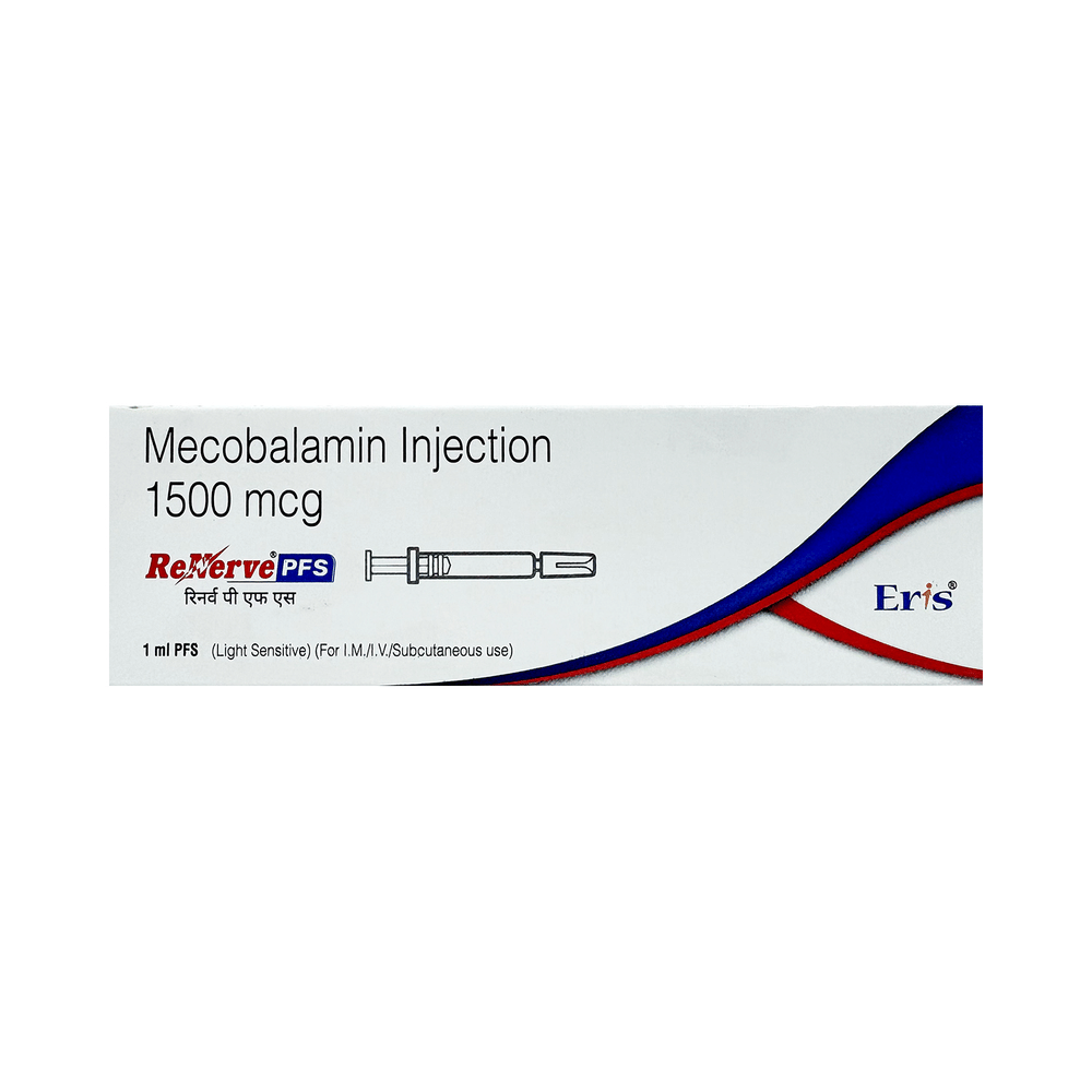 Renerve 1500mcg Prefilled Syringe is a man-made form of vitamin B12. It is used to treat deficiency of vitamin B12 in the body. Vitamin B12 is important for growth, cell reproduction, blood formation, and protein and tissue synthesis. It also helps to treat anemia, fatigue, and numbness or tingling in the hands and feet. Renerve 1500mcg Prefilled Syringe should be used exactly as prescribed by the doctor. Follow all directions on the prescription label and read all medication guides before use. You should use it regularly and at a fixed time each day to get the most benefit from it. This medicine may be only part of a complete program of treatment that also includes making changes to your diet and taking other medicines and supplements. Learn about the foods you should eat to make sure you get enough vitamin B12 in your diet.Renerve 1500mcg Prefilled Syringe is generally safe and does not usually cause any common side effects. Some medicines can decrease the absorption of vitamin B12, let your doctor know all other medicines you are taking to make sure you are safe. To make sure it is safe for you, before using the medicine let your doctor also know if you have any medical conditions such as Leber's disease, liver disease, or kidney disorder.
