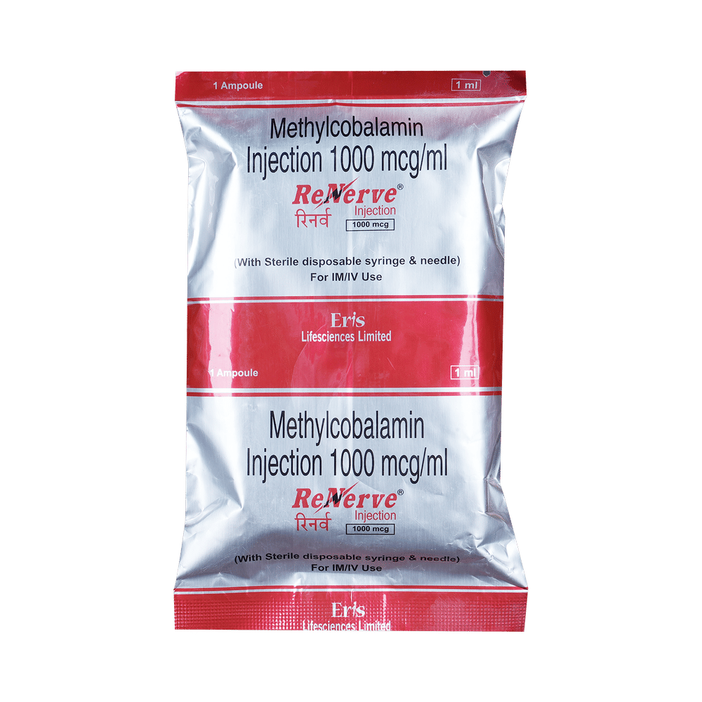 Renerve 1mg Injection helps replenish vitamin B12 level in your body.