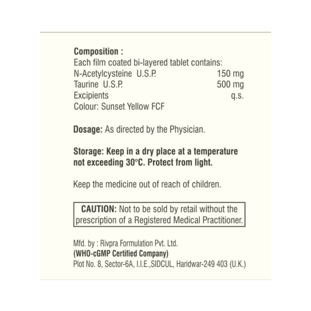 Salt Composition: Taurine (500mg) + Acetylcysteine (150mg)