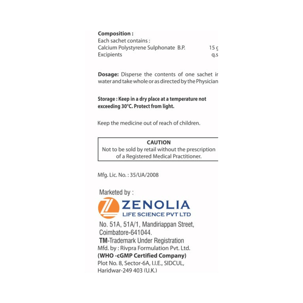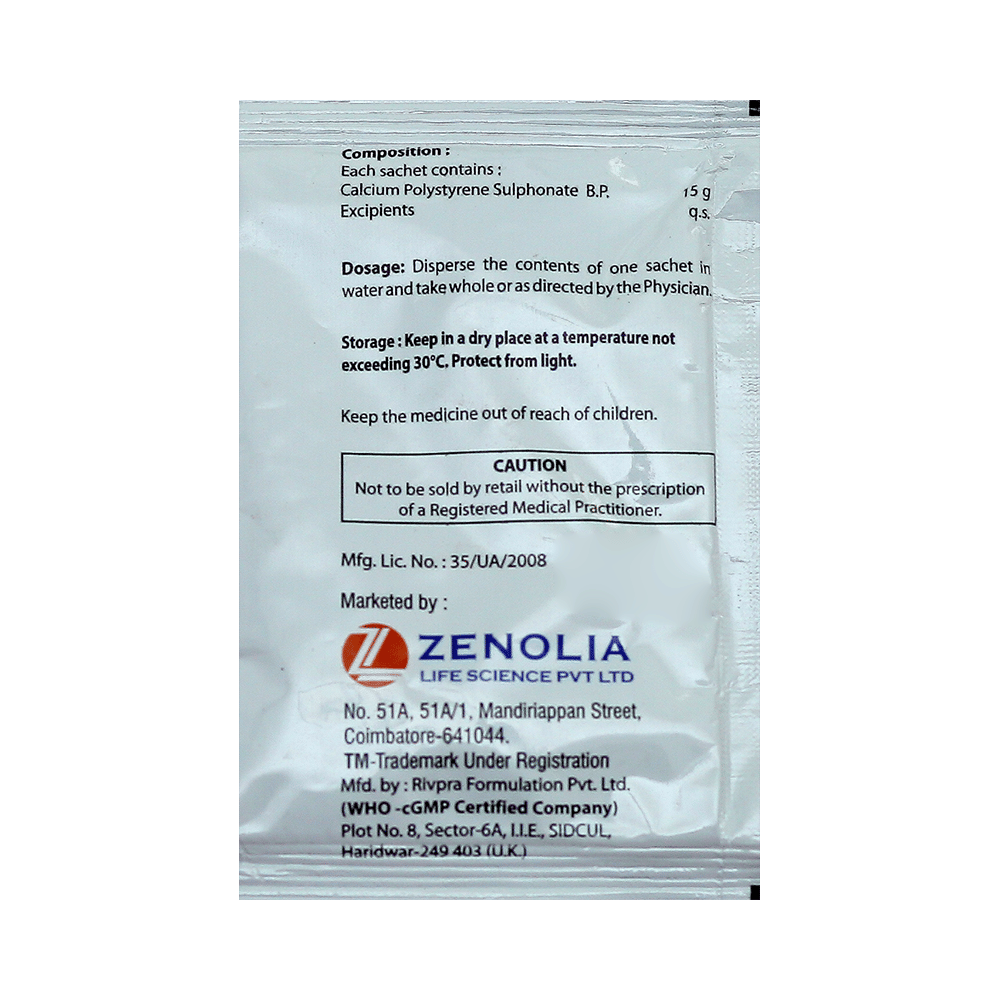 Salt Composition: Calcium Polystyrene Sulphonate (15gm)