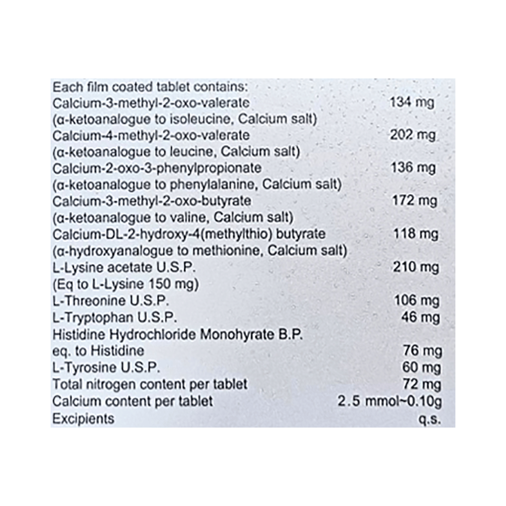 Rentiva-DS Tablet is a nutritional supplement used in the treatment of chronic kidney disease. It reduces urea levels in the blood and helps prevent the progression of kidney disease. This way it delays the risk of undergoing long-term dialysis. Rentiva-DS Tablet is to be taken by mouth with or without food. Take it in the exact dose and duration as advised by the doctor. Taking it along with a low-protein diet may help get the best of the medicine. Ensure that you maintain adequate calorie intake during treatment. While you are taking this medicine, your doctor may advise regular monitoring of serum calcium levels.There is limited data on the side effects of Rentiva-DS Tablet. Let your doctor know if you experience any symptoms while taking Rentiva-DS Tablet. They may be able to suggest ways to treat or manage the side effects.Before taking Rentiva-DS Tablet, it is important to tell your doctor if you are taking any other medicines for other health conditions. Avoid taking Rentiva-DS Tablet if you are allergic to its ingredients, or have high calcium levels (hypercalcemia). Regular monitoring of calcium levels is recommended during use.Avoid combining Rentiva-DS Tablet with calcium-containing supplements or certain antibiotics (e.g., tetracyclines, quinolones) without consulting a doctor, as they may interfere with absorption. Pregnant, breastfeeding women, and individuals with liver disease should seek a doctor’s advice before use. Avoid activities requiring full mental alertness, such as driving, until you know how the medication affects you.