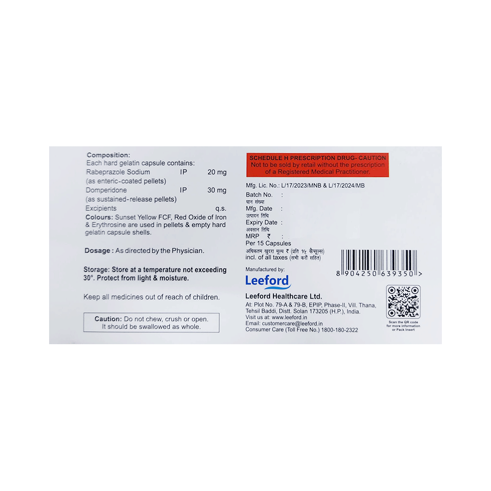 Salt Composition: Domperidone (30mg) + Rabeprazole (20mg)