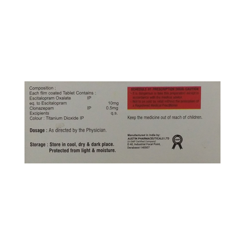 Salt Composition: Clonazepam (0.5mg) + Escitalopram Oxalate (10mg)