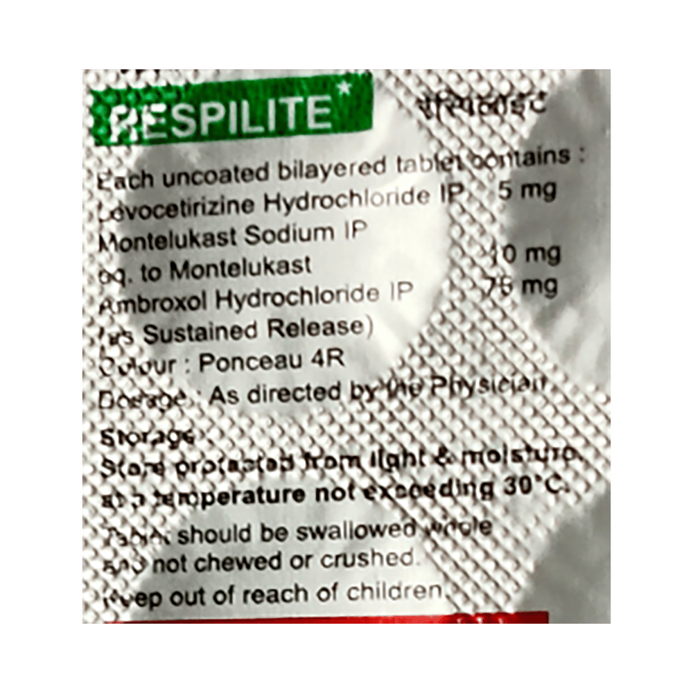 Take this medicine in the dose and duration as advised by your doctor. Swallow it as a whole. Do not chew, crush or break it. Respilite Tablet may be taken with or without food, but it is better to take it at a fixed time.