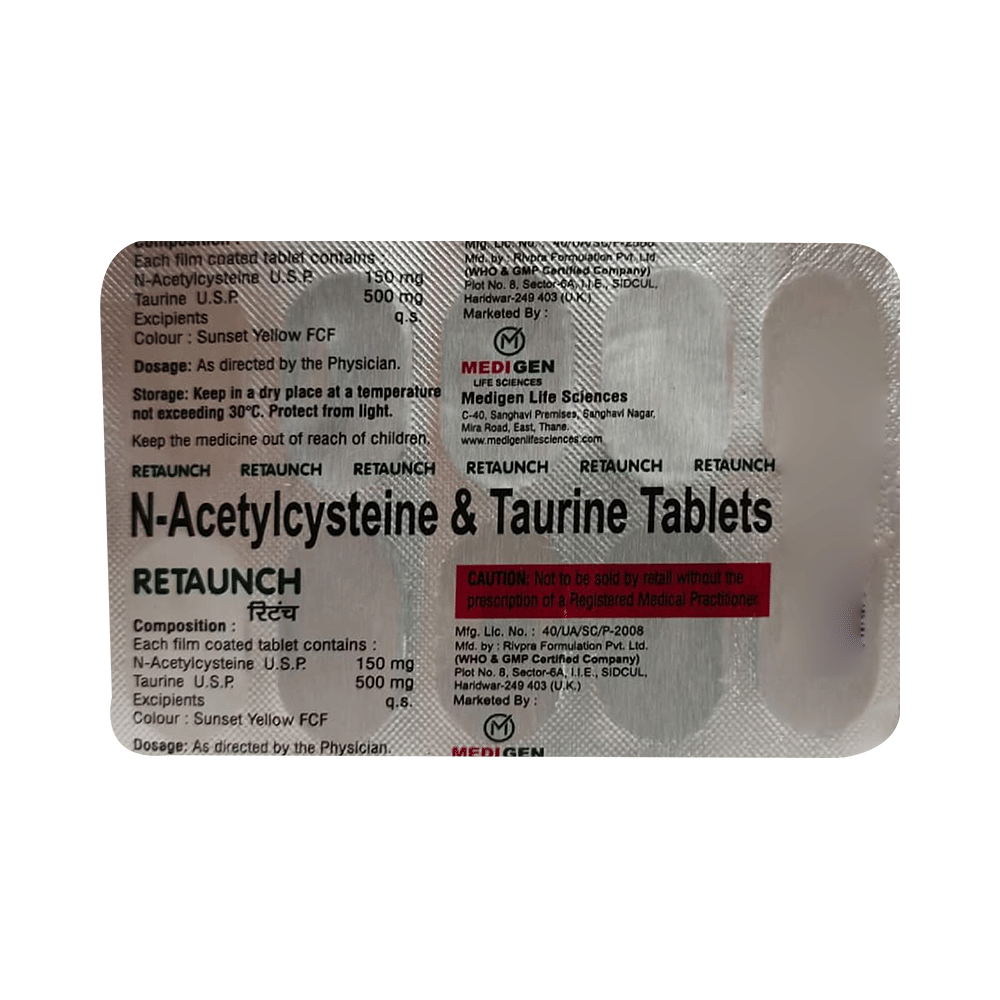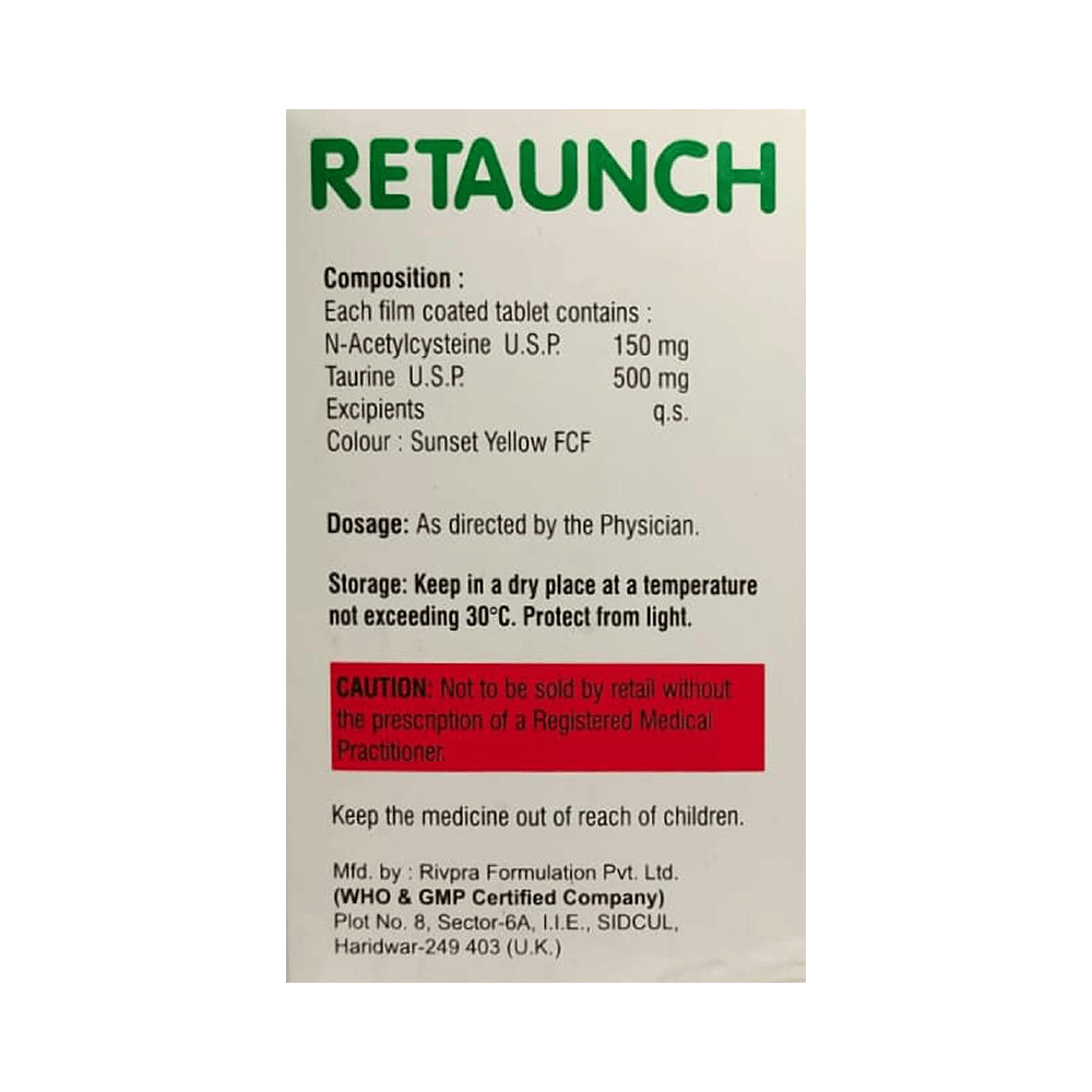 Retaunch Tablet is a combination of two antioxidants: Taurine and Acetylcysteine. These antioxidants work by protecting the kidneys from damage by harmful chemical (free radicals).
