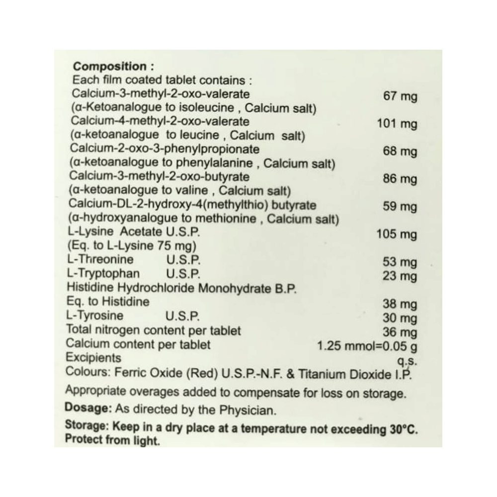 Retroalfa Tablet is a nutritional supplement used in the treatment of chronic kidney disease. It reduces urea levels in the blood and helps prevent the progression of kidney disease. This way it delays the risk of undergoing long-term dialysis. Retroalfa Tablet is to be taken by mouth with or without food. Take it in the exact dose and duration as advised by the doctor. Taking it along with a low-protein diet may help get the best of the medicine. Ensure that you maintain adequate calorie intake during treatment. While you are taking this medicine, your doctor may advise regular monitoring of serum calcium levels.There is limited data on the side effects of Retroalfa Tablet. Let your doctor know if you experience any symptoms while taking Retroalfa Tablet. They may be able to suggest ways to treat or manage the side effects.Before taking Retroalfa Tablet, it is important to tell your doctor if you are taking any other medicines for other health conditions. Avoid taking Retroalfa Tablet if you are allergic to its ingredients, or have high calcium levels (hypercalcemia). Regular monitoring of calcium levels is recommended during use.Avoid combining Retroalfa Tablet with calcium-containing supplements or certain antibiotics (e.g., tetracyclines, quinolones) without consulting a doctor, as they may interfere with absorption. Pregnant, breastfeeding women, and individuals with liver disease should seek a doctor’s advice before use. Avoid activities requiring full mental alertness, such as driving, until you know how the medication affects you.