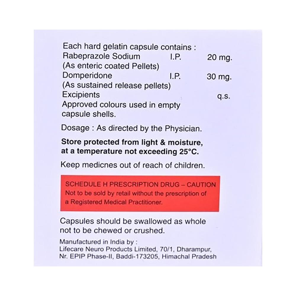 Salt Composition: Domperidone (30mg) + Rabeprazole (20mg)