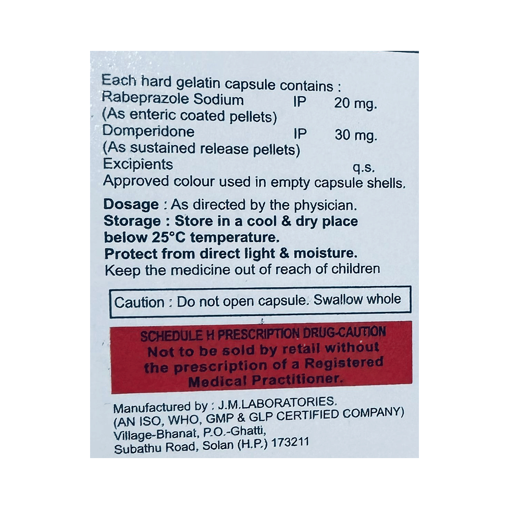 Salt Composition: Domperidone (30mg) + Rabeprazole (20mg)