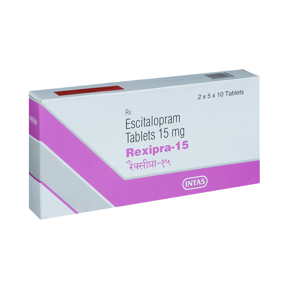 Rexipra 15 Tablet is widely prescribed to treat depression and other mental health conditions like anxiety, panic disorder, and obsessive-compulsive disorder. It is a type of antidepressant known as a selective serotonin reuptake inhibitor (SSRI). Rexipra 15 Tablet helps recover from depression by improving mood and relieving anxiety and tension. It can be taken with or without food. The dose and how often you need it will be decided by your doctor based on the amount needed to control your symptoms. Your doctor may start you on a lower dose and increase it gradually. Do not change the dose or stop taking it without talking to your doctor, even if you feel well. Doing so may make your condition worse or you may suffer from unpleasant withdrawal symptoms such as anxiety, restlessness, palpitations, dizziness, sleep disturbances.To get the most benefit, take this medicine regularly at the same time each day. Your doctor may advise you to take it in the morning if you have trouble sleeping. It may take a few weeks before you start feeling better. Let your doctor know if you do not see any improvement even after 4 weeks.Some common side effects of this medicine include nausea, fatigue, increased sweating, insomnia (difficulty in sleeping), decreased sexual drive, delayed ejaculation, and women may experience difficulties achieving orgasm. Some people may experience sleepiness after taking this medicine. Let your doctor know straight away if you develop any sudden worsening of mood or any thoughts about harming yourself.Before taking Rexipra 15 Tablet, you should tell your doctor if you have epilepsy (seizure disorder or fits), diabetes, liver or kidney disease, any heart problems, or are currently taking medicines for depression known as MAO inhibitors. These may affect your treatment. Please tell your doctor about all the medicines you are taking to make sure you are safe.