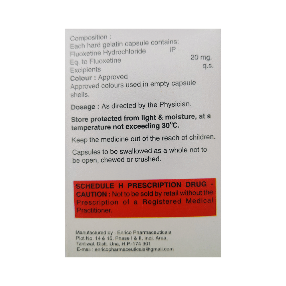 Rexodep 20 Capsule is a selective serotonin reuptake inhibitor (SSRI) antidepressant. It works by increasing the levels of serotonin, a chemical messenger in the brain. This improves mood and physical symptoms of depression and also relieves symptoms of panic and obsessive disorders.