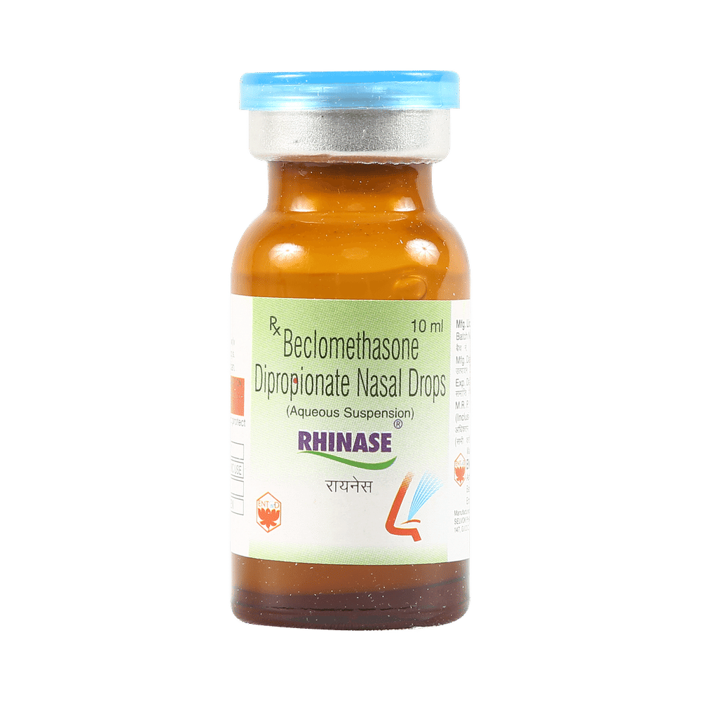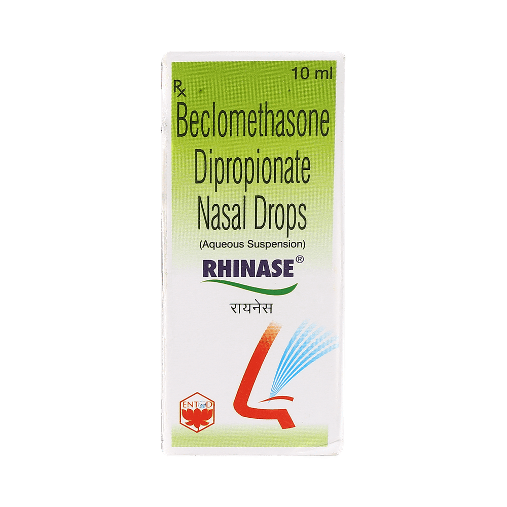 Rhinase Nasal Drops is a steroid. It relieves the symptoms of allergic rhinitis such as runny nose, sneezing and sinus discomfort. It works by blocking the production of certain chemical messengers that cause inflammation (swelling) and allergies, thus relieving the discomfort and irritation in your nose. Rhinase Nasal Drops should be used as advised by your doctor. Normally you should blow your nose gently before using it, keep one nostril closed while applying the medicine into the other, and then sniff hard to make sure it reaches deep into the nose. Then repeat for the other nostril. It may take a few days for the spray to take full effect. If you do not see any improvement in your symptoms after a week you should talk to your doctor.The most common side effects of Rhinase Nasal Drops include rash, hives, itching, erythema, nosebleeds, nasal dryness, nasal irritation, dry throat, and throat irritation. Talk to your doctor if they do not go away or get worse. Using corticosteroids like Rhinase Nasal Drops may make you more susceptible to viral infections, so you should stay away from people who have these infections. In general, you should try to avoid situations which make your symptoms worse (things like pollen and dust mites) and it is best not to smoke.Before using the medicine, you should let your doctor know if you are pregnant or breastfeeding. It is important to discuss the risks and benefits with your doctor. If you use this medicine for a long time, your doctor may want to carry out certain medical tests to check your progress.