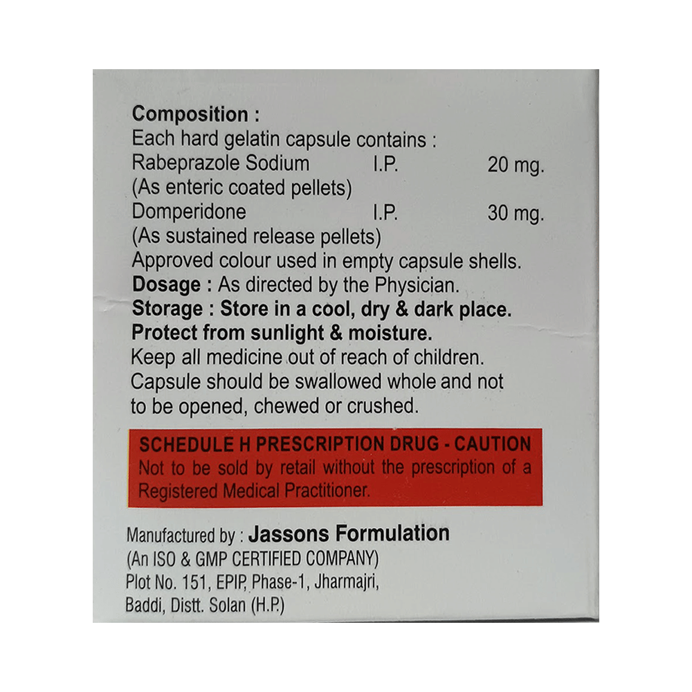 Salt Composition: Domperidone (30mg) + Rabeprazole (20mg)