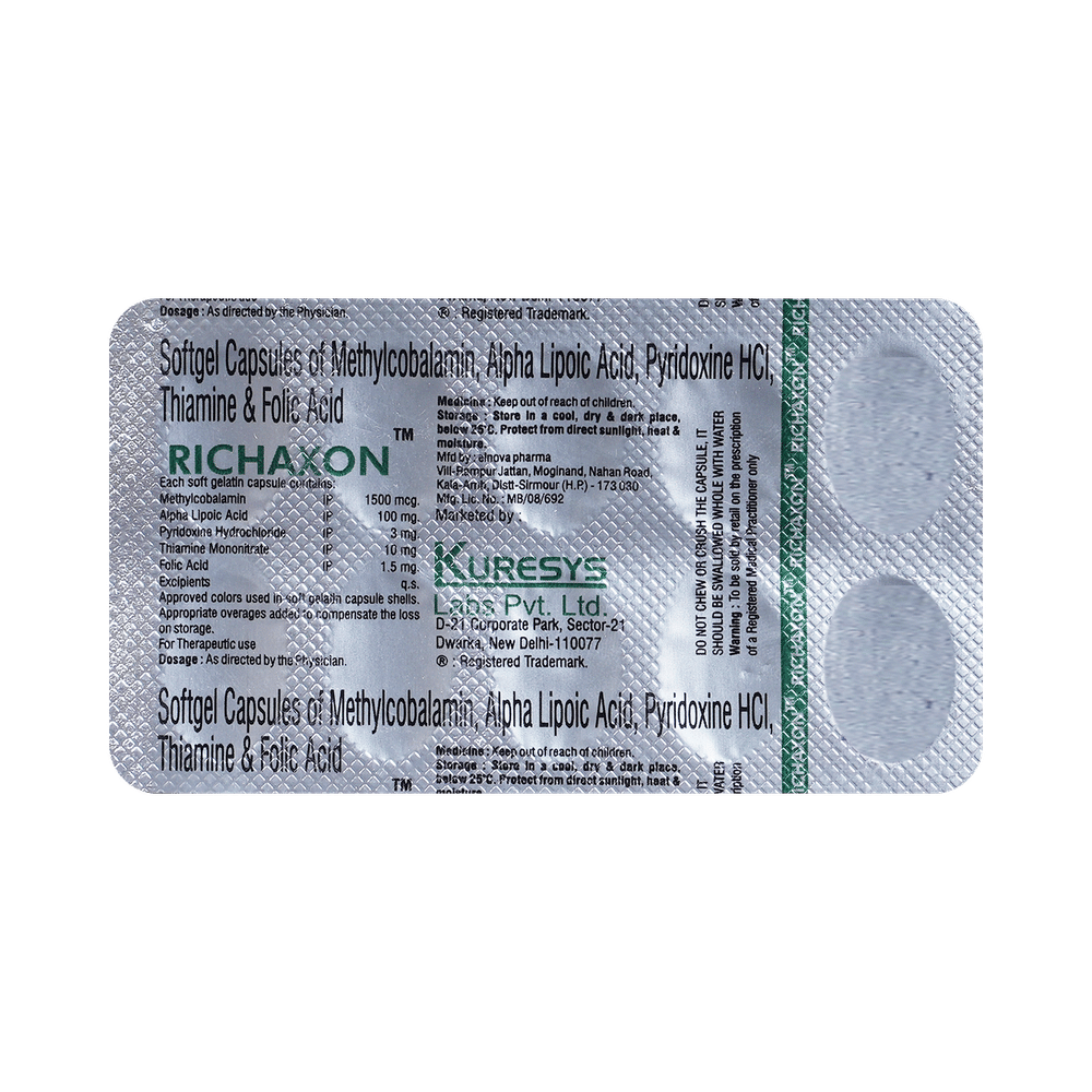 Take this medicine in the dose and duration as advised by your doctor. Swallow it as a whole. Do not chew, crush or break it. Richaxon Soft Gelatin Capsule is to be taken empty stomach.
