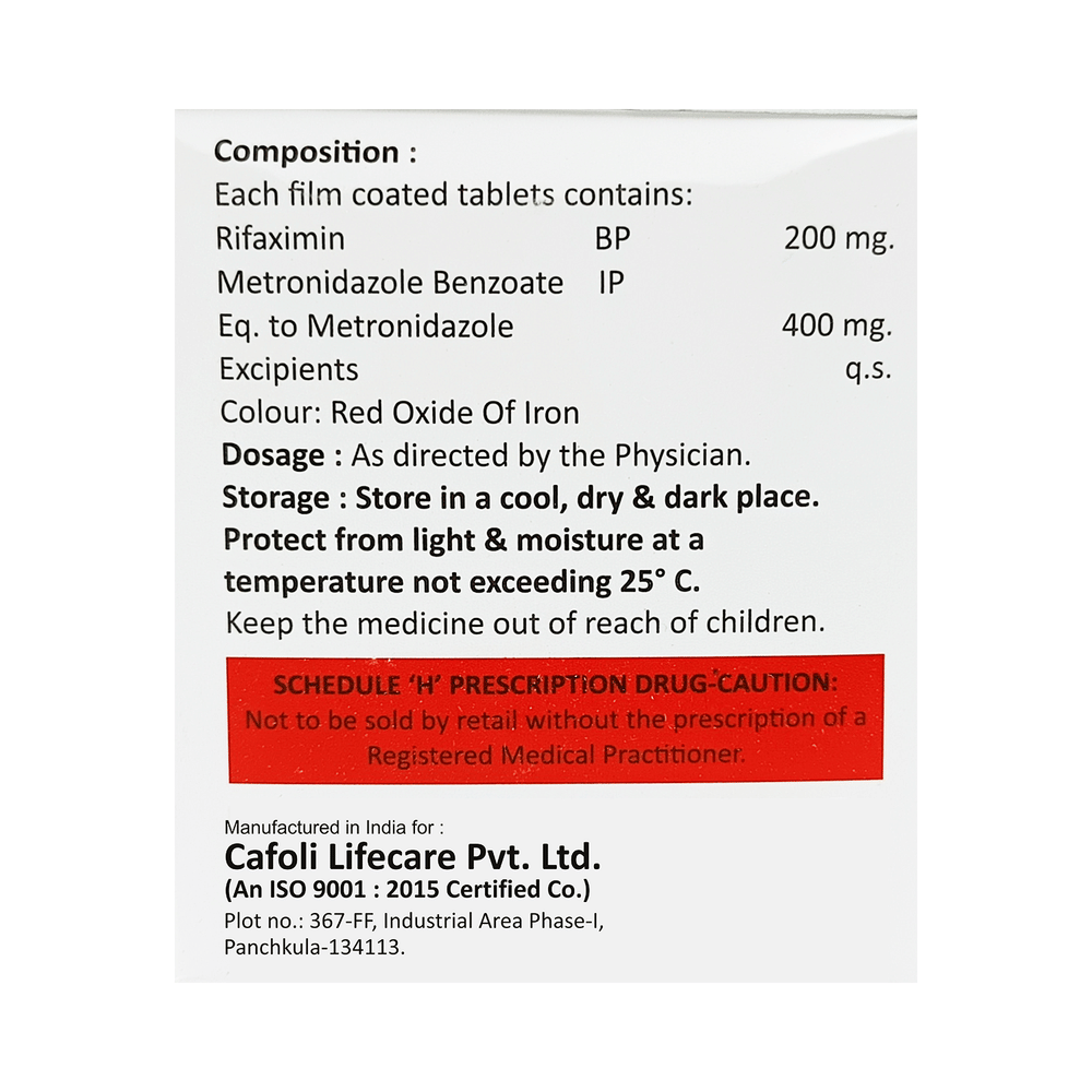 Salt Composition: Rifaximin (200mg) + Metronidazole (400mg)