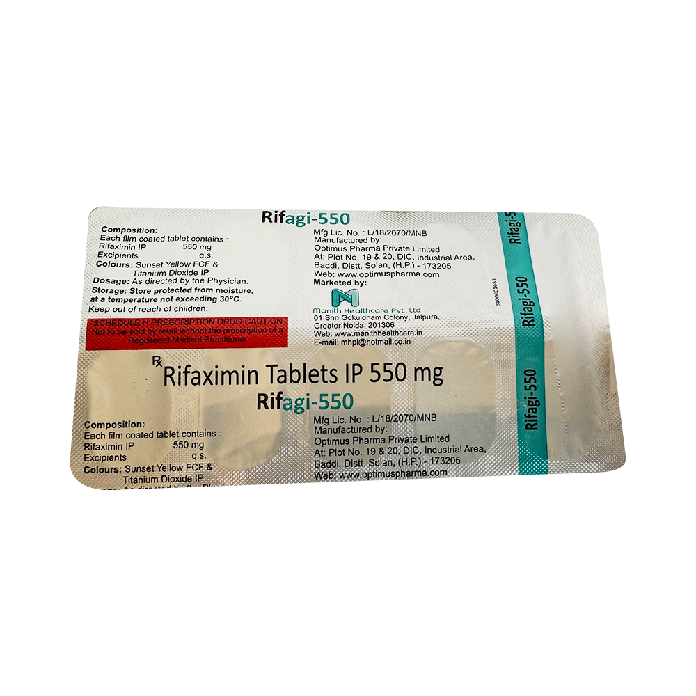 In Treatment of Hepatic encephalopathyHepatic encephalopathy is a severe liver disease that can cause changes in brain function leading to confusion, tremors (shaking), sleep problems and loss of consciousness. Symptoms include agitation, confusion, muscle problems, difficulty in speaking, and sometimes, coma. Rifagi 550 Tablet lowers the levels of ammonia-producing bacteria in the blood which has harmful effects on the brain. If taken as prescribed, this medicine can improve your brain function and reduce symptoms associated with hepatic encephalopathy.In Treatment of Infectious diarrheaInfectious diarrhea is a condition characterized by the sudden onset of loose or watery stools caused by harmful microorganisms in the digestive system. Rifagi 550 Tablet helps treat infectious diarrhea by targeting and stopping the growth of harmful bacteria in the intestines. This medicine interferes with the bacteria's ability to make important proteins they need to survive and multiply. This helps to get rid of the bad bacteria causing the infection, which in turn reduces the diarrhea and helps you feel better.show moreshow less