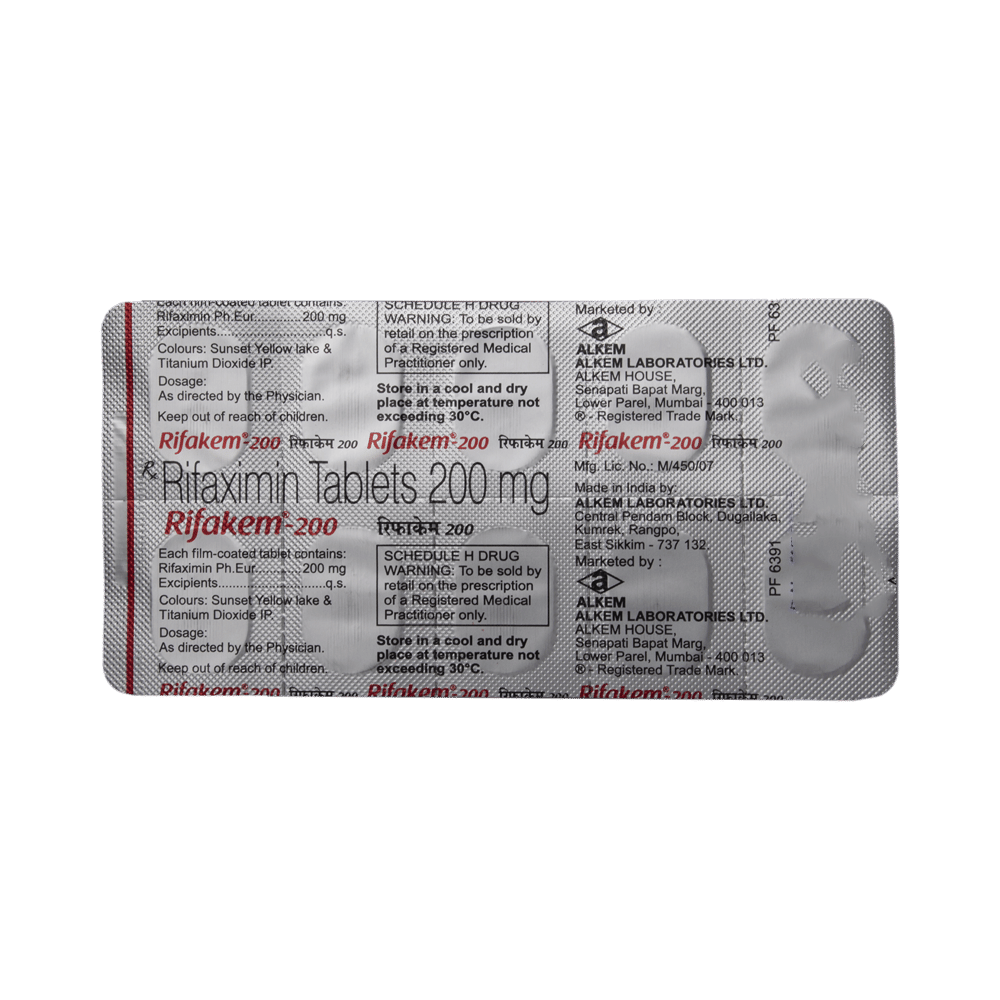 Rifakem 200 Tablet is an antibiotic medicine used to treat infectious diarrhea. It works by killing and stopping the growth of harmful bacteria in the intestines. This way it helps to get rid of the bad bacteria causing the infection, which in turn reduces the diarrhea. Rifakem 200 Tablet can be used alone or in combination with other medicines. It may be taken with or without food, preferably at the same time, each day. It should be used in the dose and duration as advised by the doctor. Take it at the same time each day to get the most benefit and you should keep on taking this medicine for as long as you are prescribed. Stopping it early may make the infection to come back and harder to treat.Some people may develop side effects like vomiting, headache, constipation, vomiting, fever, abdominal pain, and nausea. These side effects are usually temporary and go away during treatment as your body adjusts to the medicine. Consult your doctor if these side effects bother you or will not go away. Your urine may become reddish in color due to this medicine. But, it is normal and harmless.Before starting treatment with this medicine, you should tell your doctor if you are pregnant, breastfeeding or suffering from any liver, kidney or heart problems or if you are allergic to any medicine.
