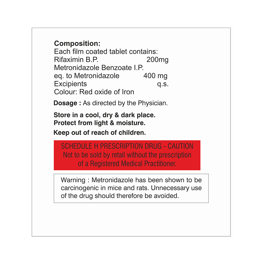 Salt Composition: Rifaximin (200mg) + Metronidazole (400mg)
